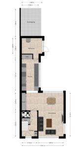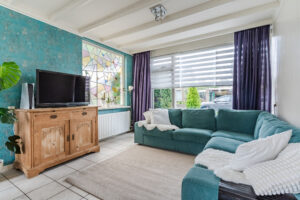 Bij binnenkomst valt meteen op hoeveel licht en ruimte deze woning biedt. De lichte woonkamer heeft grote ramen aan de voor- en achterzijde, waardoor de zon de hele dag voor een prettige sfeer zorgt. De keuken ligt aan de tuinzijde en biedt een fijn uitzicht op het groen, ideaal tijdens het koken of bij het ontbijt. Aansluitend vind je de bijkeuken, handig voor extra opslag, wasruimte of als doorgang naar buiten.