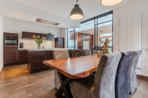 – Fijne woonkeuken met kookeiland en zitgedeelte;